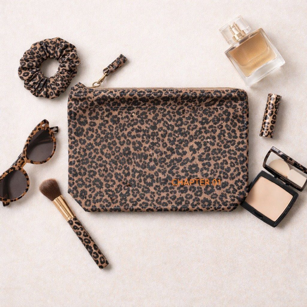 - Details: Leopardenprint, Nylon Reißverschluss mit selbsttätiger Zugvorrichtung, Aufdruck „CHAPTER 01“ in Orange