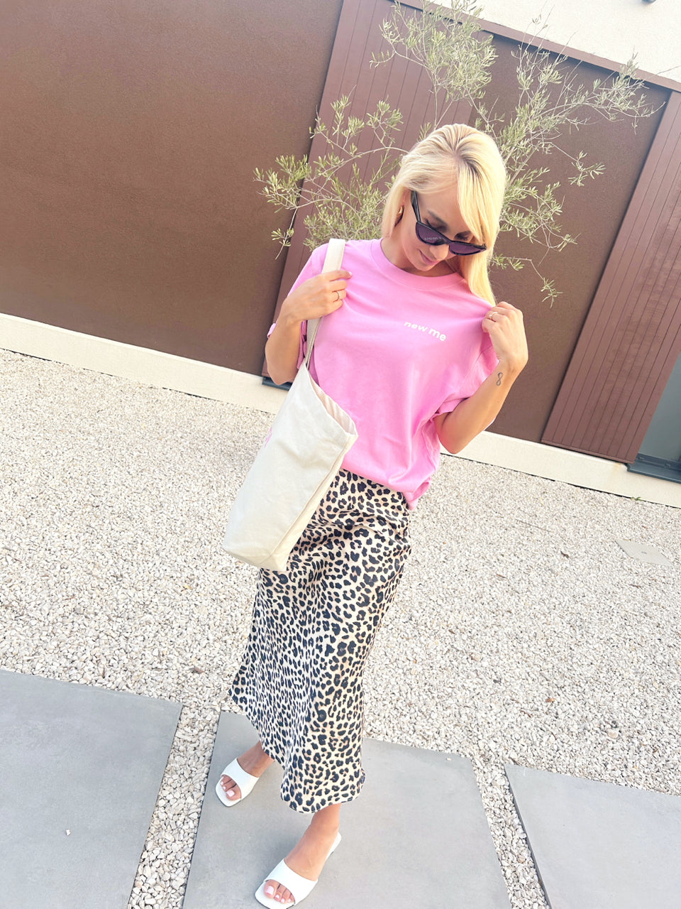 • Design: Das T-Shirt besticht durch seine lässige Passform und den trendigen pinken Farbton, der jeden Look aufwertet. Der dezente "New Me" Schriftzug auf der Brust fügt einen stilvollen Akzent hinzu.