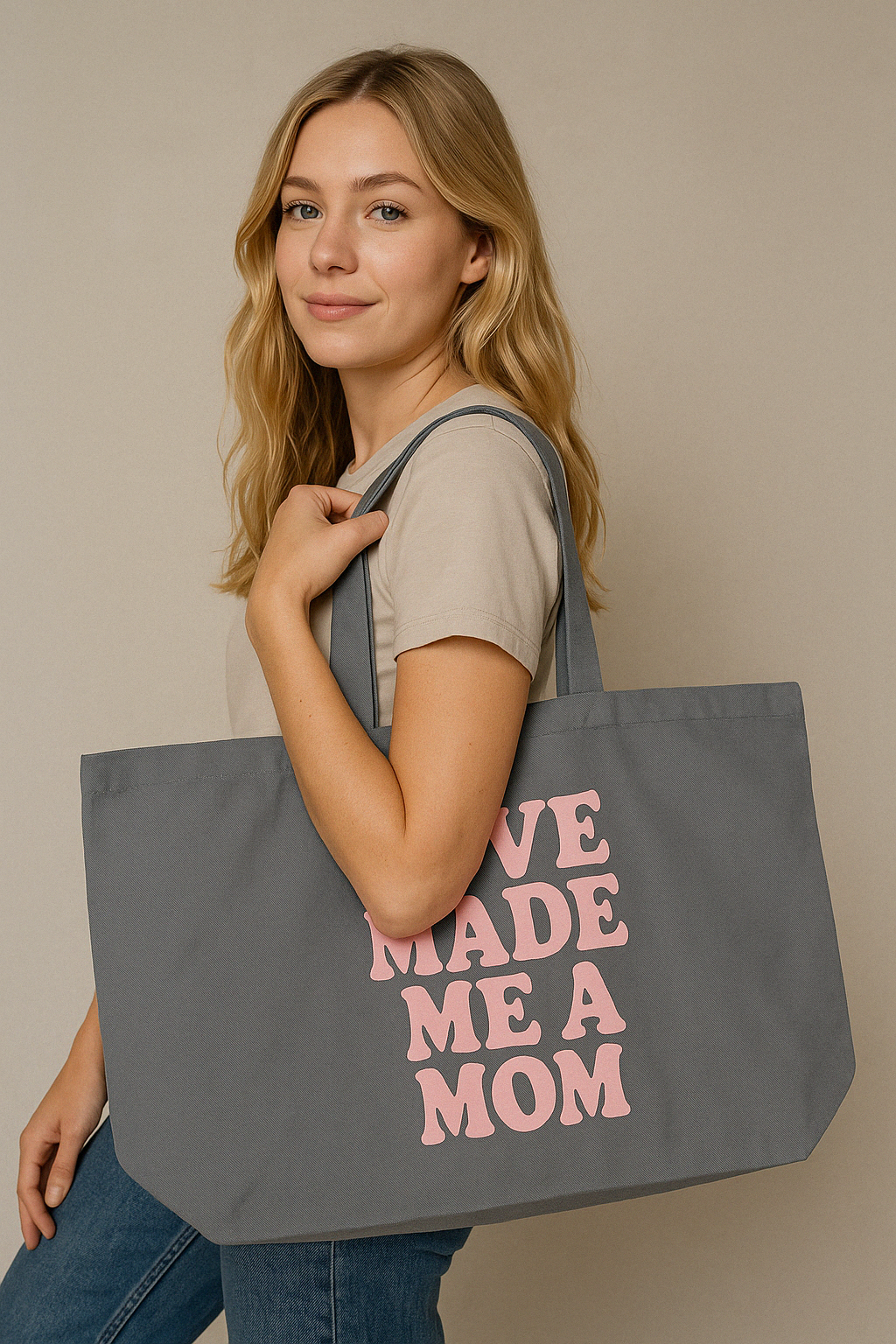 Die „LOVE MADE ME A MOM“ Oversized Tote Bag ist mehr als nur ein Accessoire – sie ist ein Statement. Sie steht für Liebe, Stärke und den Stolz, Mama zu sein. Ideal für alle, die Funktionalität mit einem Hauch Emotion und Stil verbinden möchten. Ob du selbst Mama bist oder jemandem ein besonderes Geschenk machen willst – mit dieser Tasche liegst du garantiert richtig.
